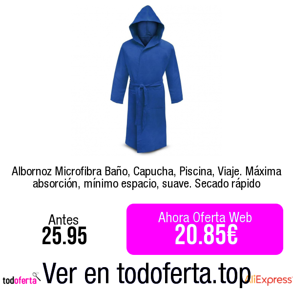 Albornoz Microfibra Baño, Capucha, Piscina, Viaje. Máxima absorción, mínimo espacio, suave. Secado rápido