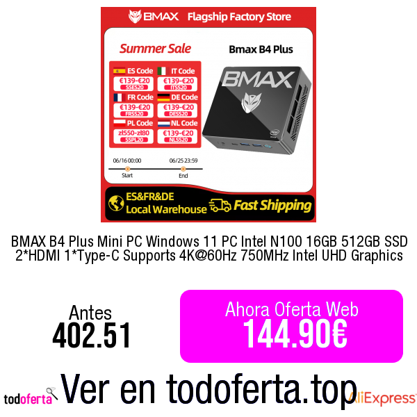 BMAX B4 Plus Mini PC Windows 11 PC Intel N100 16GB 512GB SSD 2*HDMI 1*Type-C Supports 4K@60Hz 750MHz Intel UHD Graphics