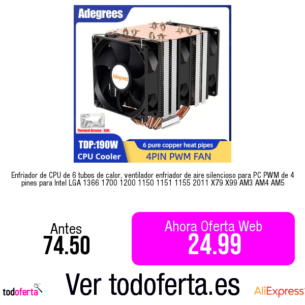 Enfriador de CPU de 6 tubos de calor, ventilador enfriador de aire silencioso para PC PWM de 4 pines para Intel LGA 1366 1700 1200 1150 1151 1155 2011 X79 X99 AM3 AM4 AM5