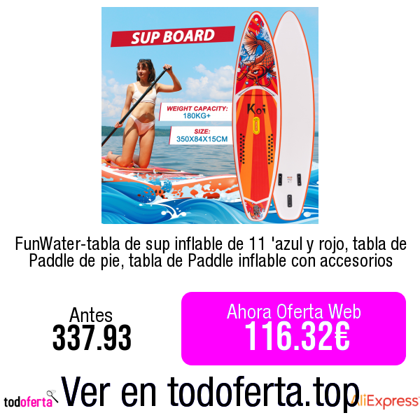 FunWater-tabla de sup inflable de 11 ‘azul y rojo, tabla de Paddle de pie, tabla de Paddle inflable con accesorios