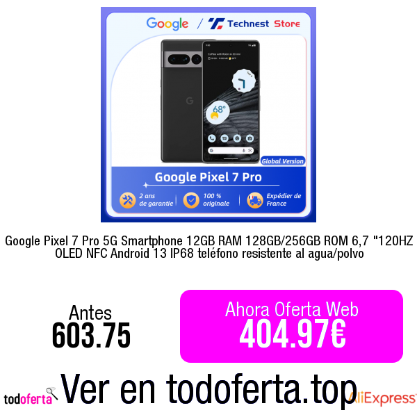 Google Pixel 7 Pro 5G Smartphone 12GB RAM 128GB/256GB ROM 6,7 «120HZ OLED NFC Android 13 IP68 teléfono resistente al agua/polvo