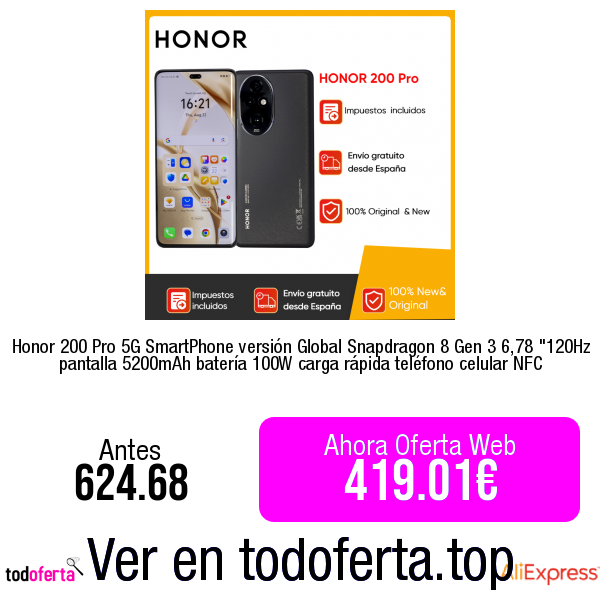 • Honor 200 Pro 5G SmartPhone versión Global…