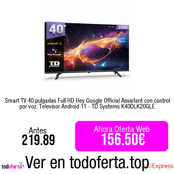 Smart TV 40 pulgadas Full HD Hey Google Official Assistant con control por voz. Televisor Android 11 – TD Systems K40DLK20GLE