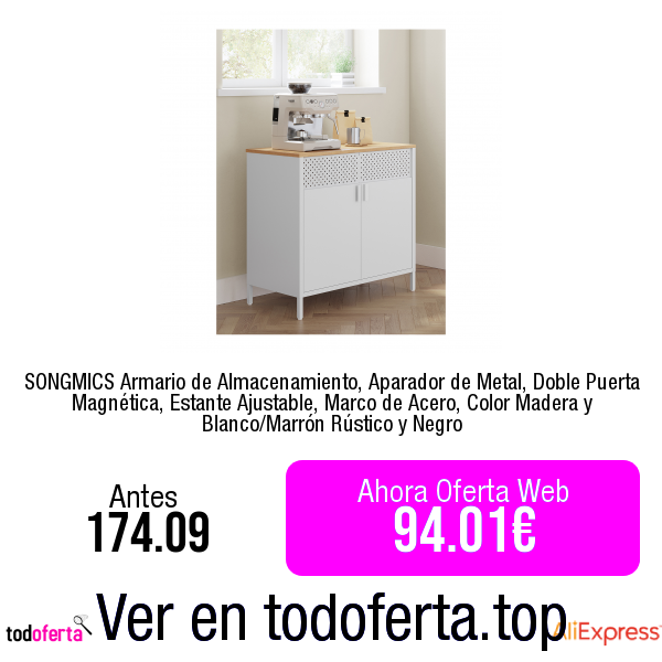 SONGMICS Armario de Almacenamiento, Aparador de Metal, Doble Puerta Magnética, Estante Ajustable, Marco de Acero, Color Madera y Blanco/Marrón Rústico y Negro