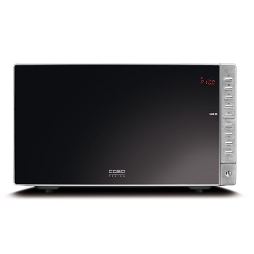 CASO SMG 20 – Microondas 2 en 1 con grill 1000W – Capacidad de 20L – frontal espejado – Plato giratorio Ø 25,5 cm – 9 programas automáticos – pequeño – acero inoxidable y negro