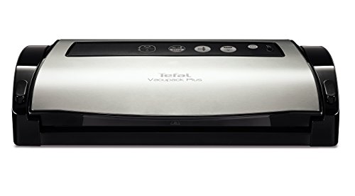 Tefal Vacupack plus VT2560PR – Envasadora al vacío de acero inoxidable, con función solo sellar y parar, diseño moderno y compacto para fácil almacenaje, incluye 2 rollos, con función húmedo y seco