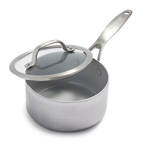 GreenPan Venice Pro Sartén con Tapa de 16cm/1.5 Litros, Acero Inoxidable Tri-Ply, Cerámica Saludable Antiadherente, Sin PFAS, Multicapa, Inducción, Apta para Lavavajillas y para Horno, Plateada