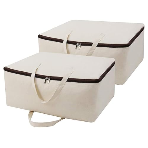 Bolsa de almacenamiento transpirable de lona de algodón suave 100% para ropa de cama, edredones, prendas de vestir, 2 piezas