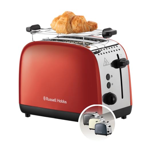 Russell Hobbs Tostadora Colours Plus, 2 Ranuras Cortas y Anchas, Tostador para 2 Rebanadas, Bandeja Recogemigas, Calientapanecillos, Función Cancelar y Descongelar, Acero Inoxidable, Rojo, 26554-56