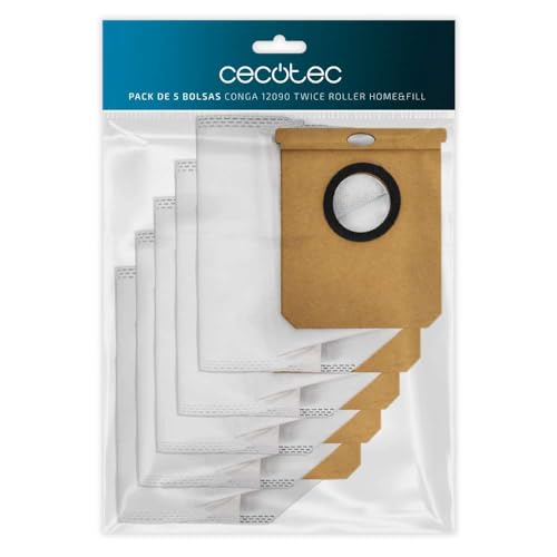 Cecotec Pack de 5 Bolsas para la Base de Autovaciado del Robot Aspirador Conga 12090 Twice Roller Home&Fill. Incluye 5 Bolsas Higiénicas con 2 litros de Capacidad