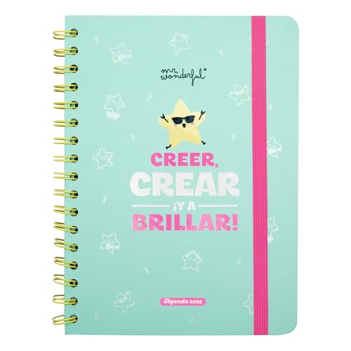 Mr. Wonderful – Agenda Wonder 2025 Semanal – Creer, crear ¡y a brillar! – Incluye 8 Hojas de Pegatinas y Bloc de Notas Adhesivas con Formas