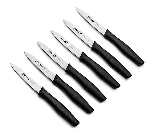 ARCOS Juego de 6 Cuchillos Mondadores con Hoja de 100mm en Acero Inoxidable y Mango de Polipropileno. Set de Cuchillos de cocina para Pelar Apto para Lavavajillas. Serie Nova. Color Negro