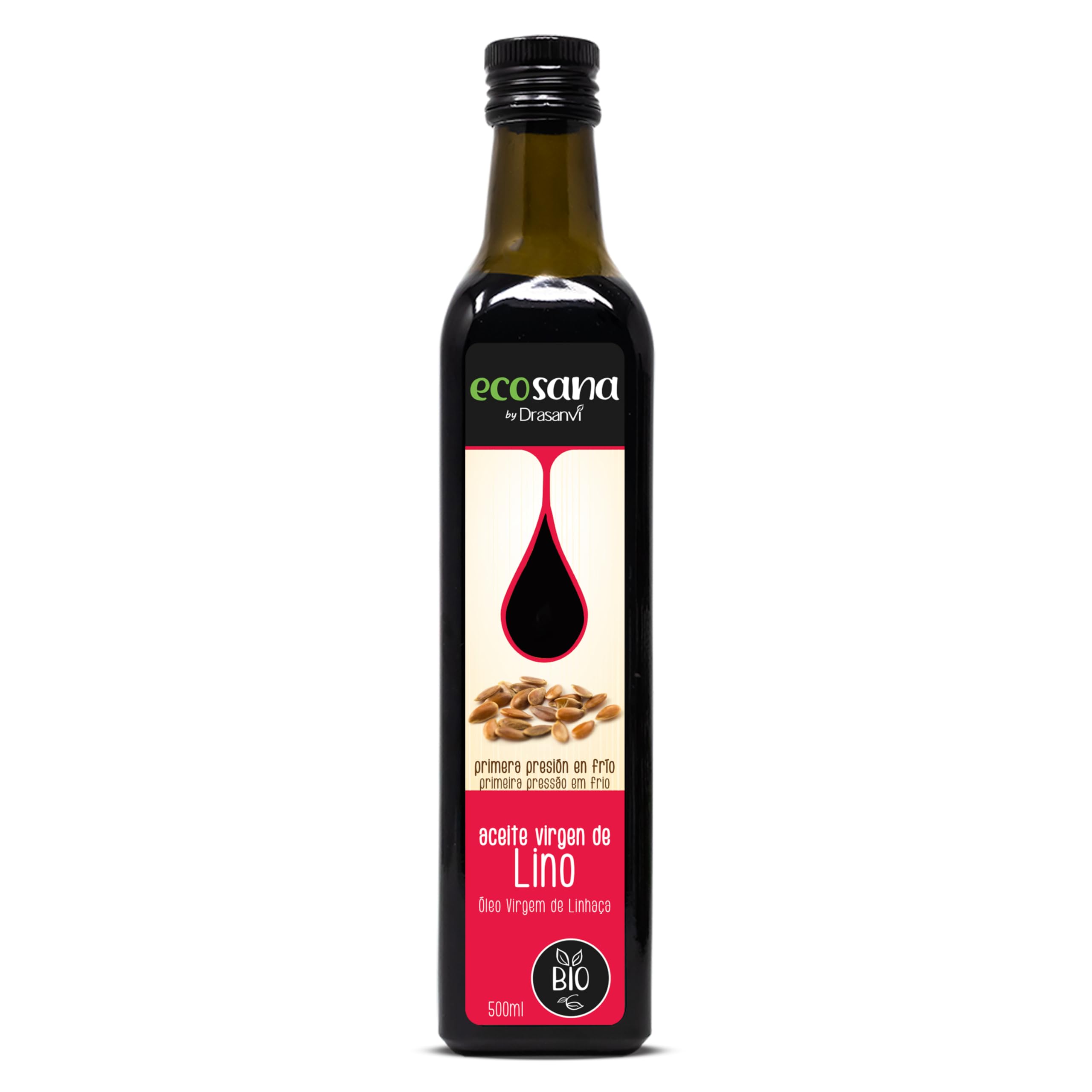 DRASANVI ECOSANA Aceite de Lino Bio | Alto Contenido en Omega 3 además de 6 y 9 | Laxante Natural | Aporte de Fitoestrogenos | Protección Cardiovascular | Para Utilizar en Crudo |500 ml