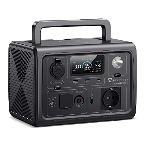 BLUETTI EB3A Generador Solar Portátil, Respaldo de Batería LiFePO4 de 268Wh, Salidas de AC de 600W (Pico de 1200W), Carga 80% en 30 minutos, Generador para Acampar (Panel Solar Opcional)