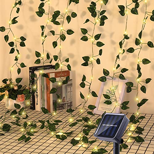 GuKKK Guirnaldas Luces Exterior Solar, de Hiedra Artificial 100LED 10M, 8 Modos, Impermeable Cadena de Luces Led Decoración, para Jardín