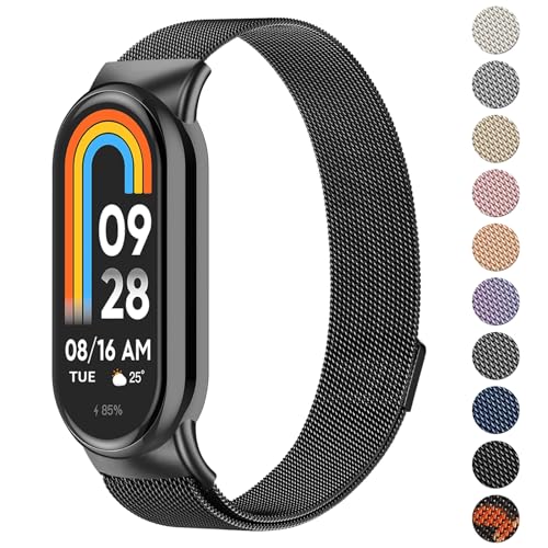 Oumida Correa Sólo para Correa Xiaomi Mi Band 8, Correas de Metal, Pulseras de Repuesto Ajustable de Acero Inoxidable con Imán para Xiaomi Mi Smart Band 8 Pulsera, Negro