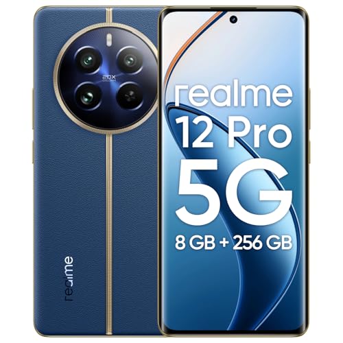 realme Teléfono Móvil 12 Pro 5G 8 + 256GB, Cámara para retratos con teleobjetivo, Sony IMX882 con OIS, Pantalla de visión curva de 120Hz, Procesador Snapdragon 6 de 1ª generación 5G, Submarine Blue