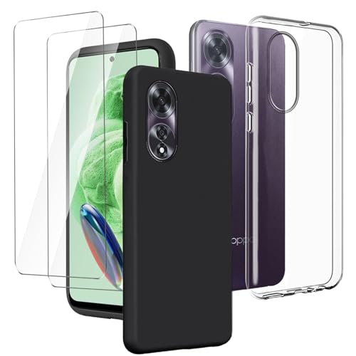 LYZXMY Funda para OPPO A60 (6.67″) Transparente + Negro Carcasa + [2 Piezas] Vidrio Templado Película Protectora – Silicona TPU Suave Caso Case