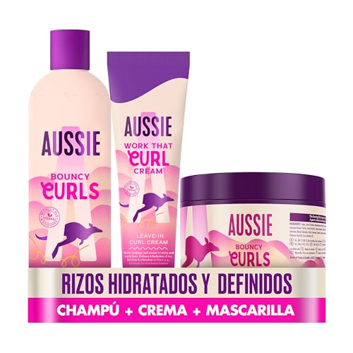 Aussie PACK ESPECIAL: Bouncy Curls: Champú Hidratante Cabello Seco Rizado Y Ondulado + Mascarilla Capilar Con O Sin Aclarado + Crema Definidora Rizos