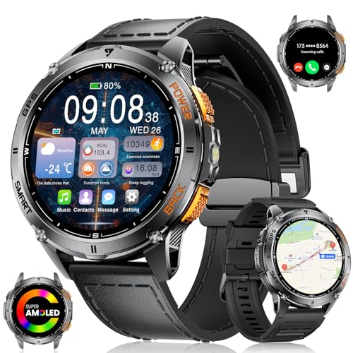 LIGE GPS Reloj Inteligente Hombre con Barómetro/Altímetro/Brújula, Pantalla AMOLED HD 1,43″, Smartwatch con Linterna LED Integrada, 110+Modos Deportivos/530 mAh Batería/Impermeable IP68, iOS Android