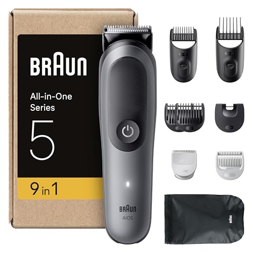 Braun Recortadora Todo En Uno Series 5, AIO5545, Kit De Styling 9en1 Para Barba, Pelo, Orejas, Nariz y Cuerpo, 120 Min, Cortapelos Hombre Con Lámina Ultra Afilada, Recorte Preciso Y Eficiente, Gris