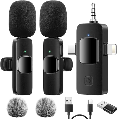 GlasFlength Microfono Inalambrico para iPhone Android Cámara PC, 4 en 1 Mini Micrófono Inalámbrico Solapa Plug&Play Portátil Wireless Microphone Reducción de Ruido para Grabación de Video TIK Tok