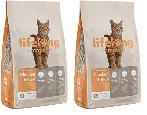 Marca Amazon – Lifelong – Alimento seco Completo para Gatos Adultos Rico en Pollo y arroz, 3 kg (Paquete de 2)