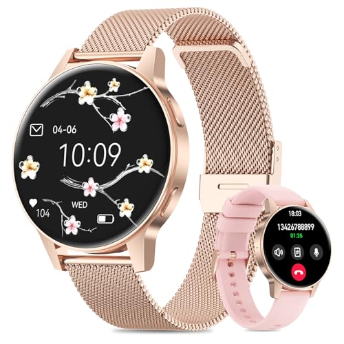 2025 Reloj Inteligente Mujer con SIRI/ET/HRV, 1.27″TFT Pantalla Táctil Smartwatch con Llamadas Bluetooth Pulsometro Ciclo Menstrual IP68 Fitness Tracker Monitor de Sueño para iOS & Android (Oro rosa)