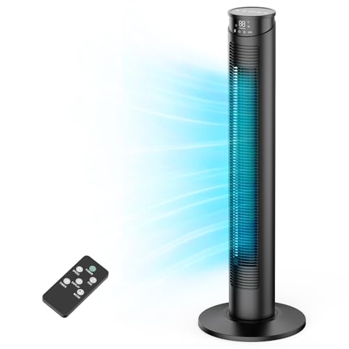 Ventilador Torre, Ventilador de Torre Silencioso 45W con Mando – 6 Velocidades & 5 Modos (Incluye ECO) – Pantalla LED, Temporizador 12H, Oscilación 70° – Sin Aspas – Ideal para Casa/Oficina/Dormitorio