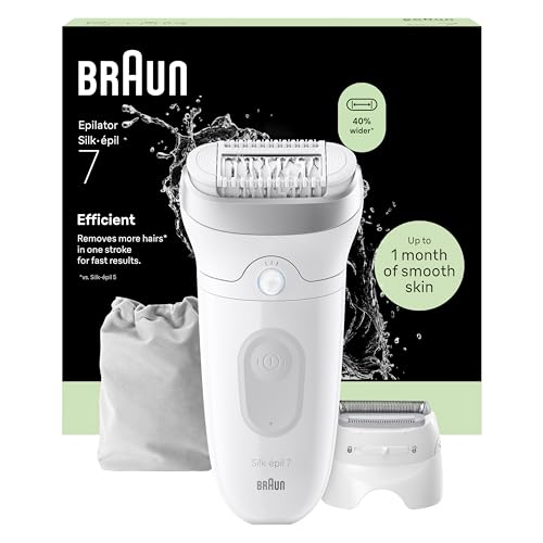 Braun Depiladora Eléctrica Mujer Silk·épil 7 Depiladora Corporal con Cabezal Ancho para Una Fácil Eliminación del Vello, Peine Recortador, Funda, Uso en Seco Y Mojado, Depilación Suave Duradera, 7-030