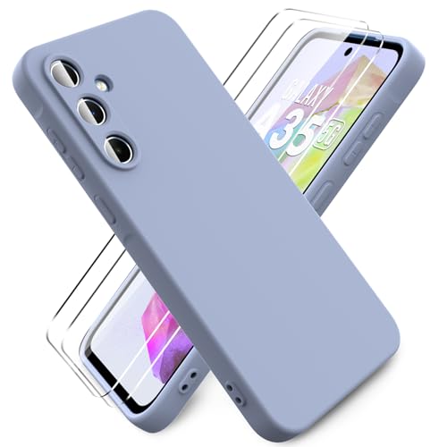 Ikziwreo – Funda para Samsung Galaxy A35 5G, con 2 Pack Protector de Pantalla de Vidrio Templado, Carcasa de Silicona Suave Ultrafina, Case de Goma a Prueba de Choques a los Arañazos – Gris