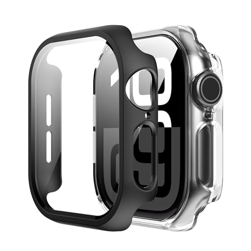 Rojeuinn Pack de 2 Funda para Apple Watch Series 10 46mm Funda Protectora con Protector de Pantalla, PC Dura 360° Funda Protectora Ultrafina Antiarañazos Antipolvo – Transparente+Negro